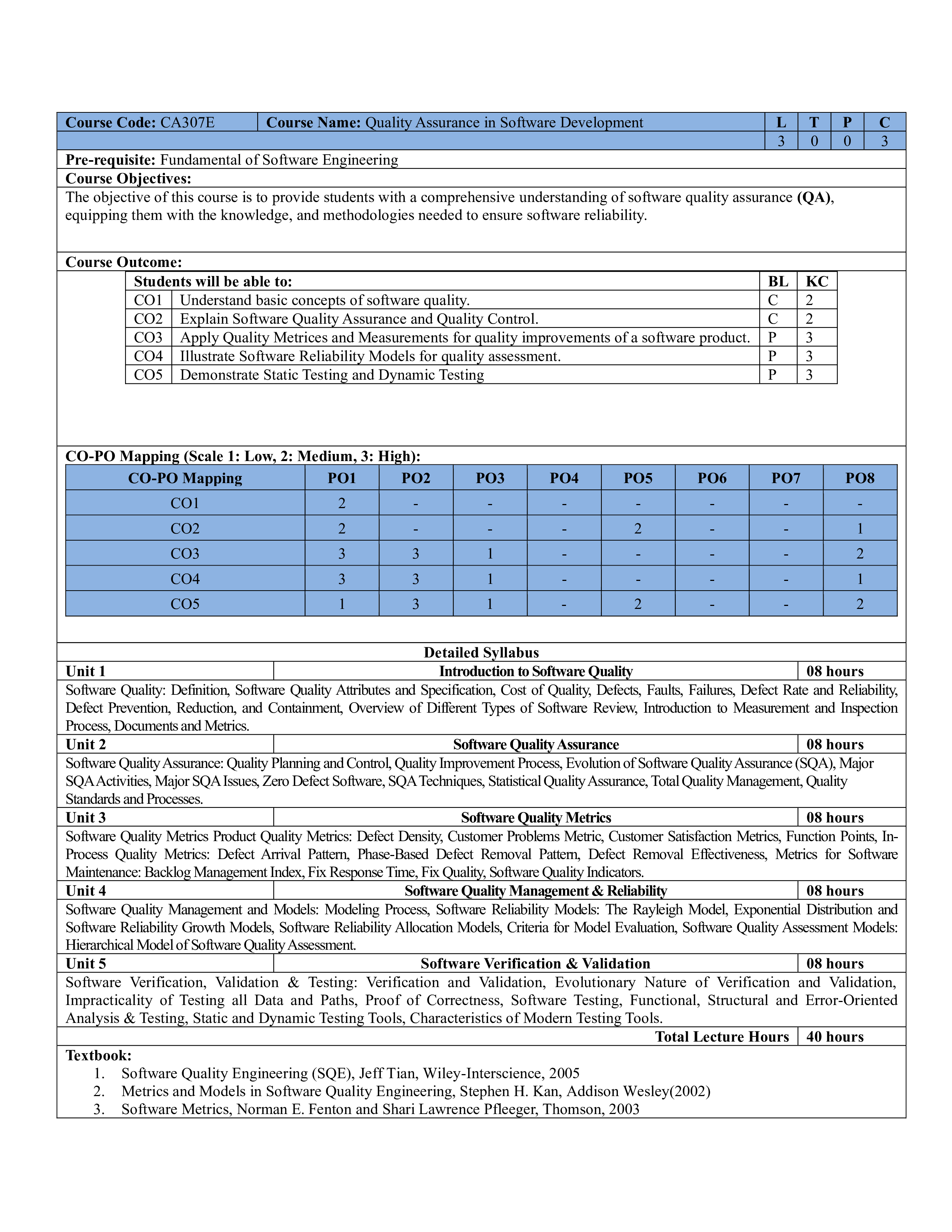 Software Quality: Definition, Software Quality Attributes and Specification, Cost of Quality, Defects, Faults, Failures, Defect Rate and Reliability, Defect Prevention, Reduction, and Containment, Overview of Different Types of Software Review, Introduction to Measurement and Inspection Process, Documents and Metrics. |